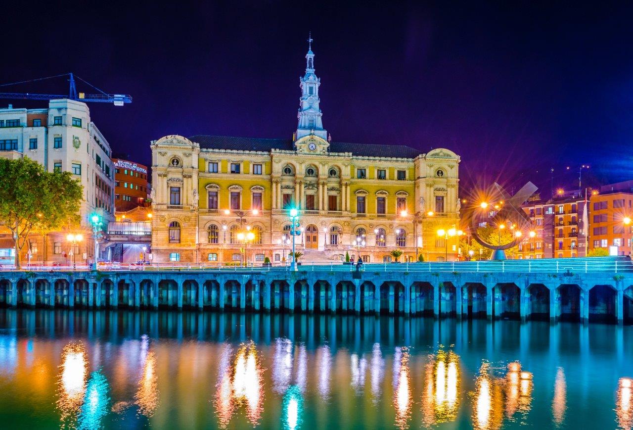Disfrute del desayuno en el hotel antes de explorar Billbao. Aunque la capital de la comunidad autónoma de Euskadi – País Vasco – es Vitoria, la ciudad portuaria de Bilbao es, de hecho, la mayor de las ciudades vascas. La renovación de esta ciudad industrial ha sido continua desde la apertura del Museo Guggenheim en 1997, con varios proyectos diseñados por arquitectos famosos, incluido un nuevo sistema de tranvía, un sistema de metro diseñado por Sir Norman Foster, un puente peatonal, el puente Zubizuri por Santiago Calatrava, un accidentado edificio de salud pública y la reconversión bajo las órdenes del conocido diseñador Philippe Starck de un almacén en desuso convertido en un edificio público multifunción, la Alhóndiga. Otras estructuras destacables son la torre Iberdrola, de César Pelli, la nueva biblioteca de la Universidad de Deusto de Rafael Moneo y el Paraninfo de la Universidad del País Vasco de Alvaro Siza.